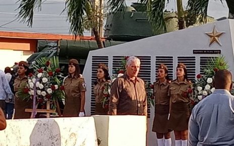 Playa Larga, Matanzas, 19 abr (ACN) Miguel Díaz-Canel Bermúdez, primer secretario del Comité Central del Partido Comunista de Cuba (PCC) y presidente de la República saluda hoy junto al pueblo, en Playa Girón, la histórica victoria asestada al imperialismo hace 65 años. Ante el monumento existente en el Museo Memorial Playa Girón, con los nombres […]