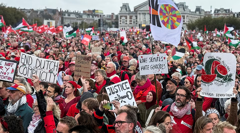 Una marea de personas vestidas de rojo llenó este domingo las calles de Ámsterdam para exigir al Gobierno neerlandés “medidas concretas para detener el genocidio israelí y la ocupación de Palestina”. Los organizadores de la manifestación de la “línea roja” (Rode lijn), entre los que había grupos judíos, indicaron que cerca de 250 000 personas […]