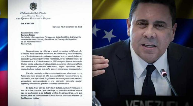 El representante permanente de Venezuela ante las Naciones Unidas, Samuel Moncada, presentó una misiva formal ante el Consejo de Seguridad en la que denuncia el abordaje, secuestro y robo de un cargamento de petróleo venezolano en aguas internacionales por parte de Estados Unidos, calificándolo como un acto de “piratería marítima ejercida directamente por un Estado”. […]