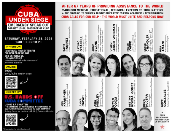 El Comité Manos Fuera de Cuba (U.S. Hands off Cuba L.A.) convocó a un conversatorio que marcará el lanzamiento de las acciones de apoyo del Convoy de Ayuda Internacional a Cuba en la ciudad de Los Ángeles, sumándose así a la reciente iniciativa anunciada por el activista David Adler para coordinar esfuerzos destinados a romper […]