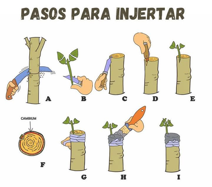 Vale la pena experimentar. Iníciese como ilustra la gráfica. Haga ese tipo de injertos. Son de los más fáciles pero, en esencia, con todas las particularidades comunes a los demás. El truco está en no dejar espacios de aire entre el patrón y la púa.