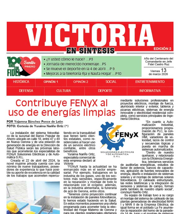 Boletín Victoria en Síntesis 02/ 13-03-2026 Posted on 13 marzo, 202613 marzo, 2026 Autor Redacción Digital No comentarios(0) Boletín Victoria en Síntesis 02/ 06-03-2026 Victoria en Síntesis No. 02 Otros artículos del autor: Edición impresa No 59-52/14-02-2026 Edición impresa No 59-51/07-02-2026 Edición impresa No 59-50/31-01-2026 Edición impresa No 59-49/24-01-2026 Edición impresa No 59-48/17-01-2026 Victoria en síntesis (PDF)