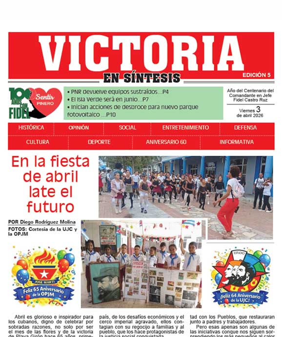 Boletín Victoria en Síntesis 05/ 03-04-2026 Posted on 3 abril, 2026 Autor Redacción Digital No comentarios(0) Boletín Victoria en Síntesis 05/ 03-04-2026 Victoria en Síntesis No. 05 Otros artículos del autor: Reorganizan y trazan estrategias en la atención primaria y secundaria de salud pinera Isla de la Juventud impulsa descentralización con innovación Edición impresa No 60-01/28-02-2026 Edición impresa No 59-53/21-02-2026 Edición impresa No 59-52/14-02-2026 Victoria en síntesis (PDF)