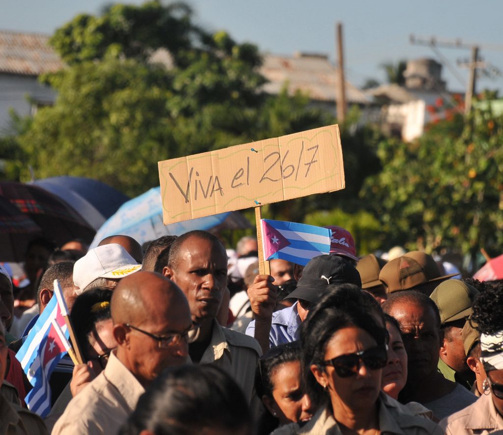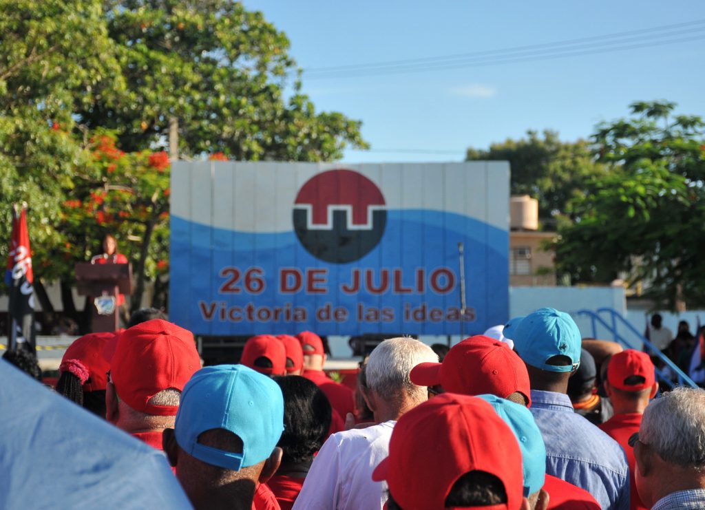 Los participantes en el acto enarbolaron banderas cubanas y del 26 de Julio, corearon consignas patrióticas, entonaron himnos y repudiaron otra vez las medidas encaminadas al recrudecimiento del bloqueo impuesto por el Gobierno estadounidense contra Cuba, con la puesta en vigor del título III de la Helms-Burton, también conocida como Ley Garrote por sus propósitos imperiales.
