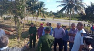 Acompañan al jefe de Estado Liván Izquierdo Alonso, miembro del Comite Central y primer secretario del Comité Provincial del PCC en La Habana; Yanet Hernández Pérez, gobernadora de la capital, entre otros.