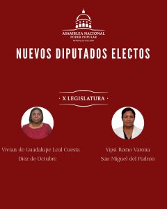 - Vivian de Guadalupe Leal Cuesta, diputada por el municipio de Diez de Octubre, La Habana.