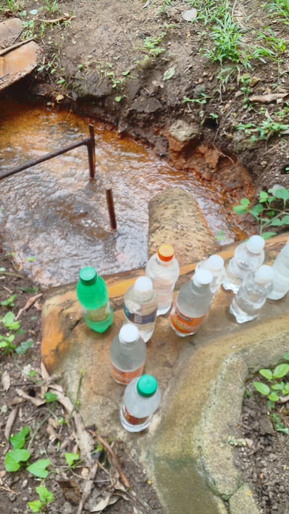 “Quizás usted crea que reciben los mismos beneficios quienes están conectados al acueducto de este pozo, pero no. Agua que se bombea entra en contacto con oxígeno, reacciona con el hierro y este se precipita. Se precipita y deja de ser asimilable por el organismo humano. Por eso, todo el que viene a buscar agua directamente del manantial hace lo correcto. Y yo le recalco: use pomos pequeños, como los de refresco. Y llénelos completamente antes de taparlos, sin dejar espacio vacío”.