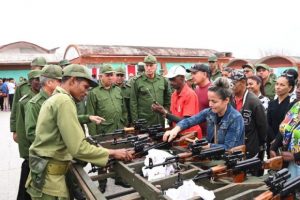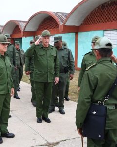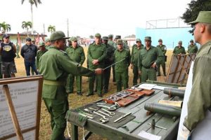 El mandatario cubano, acompañado por el ministro de las Fuerzas Armadas Revolucionarias, general de Cuerpo de Ejército Álvaro López Miera, y por el jefe del Ejército Occidental, general de División Ernest Feijóo Eiró, presenció el adiestramiento de las Brigadas de Producción y Defensa, las Milicias de Tropas Territoriales y otras formaciones militares, todas ellas en función de perfeccionar su capacidad para enfrentar y derrotar al agresor.
