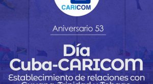 El ministro de Relaciones Exteriores Bruno Rodríguez resaltó hoy la celebración del Día Cuba-Caricom, en el aniversario 53 del inicio de relaciones diplomáticas de Cuba con Guyana, Trinidad y Tobago, Jamaica y Barbados.