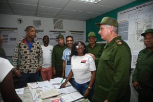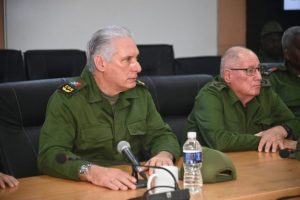 El encuentro contó también con la presencia del miembro del Consejo de Defensa Nacional, Esteban Lazo Hernández; del Ministro de las Fuerzas Armadas Revolucionarias, General de Cuerpo de Ejército Álvaro López Miera –ambos, miembros del Buró Político–; del jefe del Estado Mayor Nacional de la Defensa Civil, General de División Ramón Pardo Guerra; del jefe del Ejército Occidental, General de División Ernest Feijóo Eiró; así como del Presidente del Consejo de Defensa Provincial de La Habana, Liván Izquierdo Alonso; y de la Vicepresidenta Yanet Hernández Pérez.
