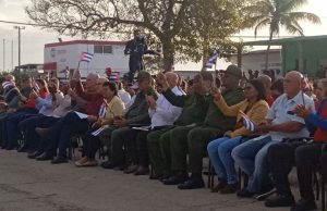 Participan además en el acto Roberto Morales Ojeda, miembro del Buró Político y Secretario de Organización del Comité Central del Partido; Salvador Valdés Mesa, vicepresidente cubano; Mario Sabines Lorenzo, primer secretario del PCC en la provincia de Matanzas; Marieta Poey Zamora, Gobernadora del territorio; y otras autoridades políticas, gubernamentales, de las gloriosas Fuerzas Armadas Revolucionarias y del Ministerio del Interior.
