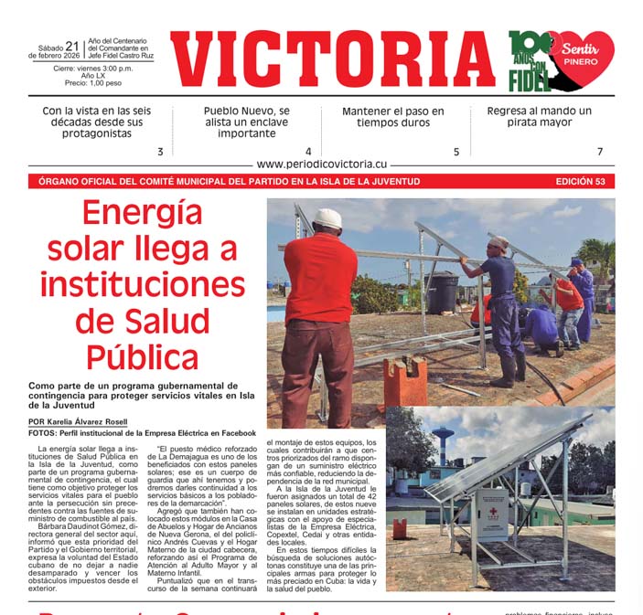 Edición impresa No 59-53/21-02-2026 Posted on 21 febrero, 202621 febrero, 2026 Autor Redacción Digital No comentarios(0) Edición Impresa No. 59-53 Otros artículos del autor: Convocan a 4ª cita del Festival Internacional de Cine Isla Verde Pineros desarrollan la soya como opción sostenible y nutritiva La vocación se construye en la disciplina diaria Reorganizan y trazan estrategias en la atención primaria y secundaria de salud pinera Edición del año 59 Ediciones Impresas