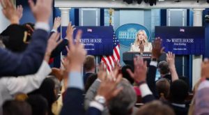 La secretaria de Prensa de la Casa Blanca, Karoline Leavitt, habla sobre el bombardeo de una lancha de presuntos narcotraficantes frente a las costas de Venezuela, el 3 de octubre de 2025 en Washington. Anna Moneymaker / Getty Images North America/AFP