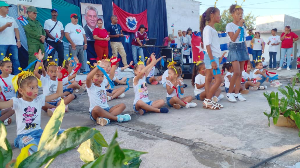 En la parte artística, la nota más alta estuvo a cargo de los niños que integran el colectivo de Las Abejitas Sucusuqueras, los cuales merecieron un aparte, fuera del escenario, donde el primer secretario del Partido, Rafael Ernesto Licea; Adiel Morera Macías, intendente y Yusmary Olivera Pupo, secretaria general de la CTC; le agradecieron por su patriótica y convincente actuación.