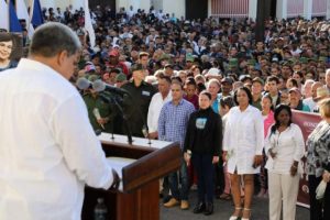 La multitud, acompañada por el jefe del Ejército Oriental, general de División Eugenio Rabilero, por Manuel Hernández Aguilera, gobernador de la provincia, y por otras personalidades, siguió las palabras de Joel Queipo Ruiz, integrante del Comité Central del Partido y su primer secretario en Holguín, quien resaltó el mensaje de firmeza combativa dejado por nuestros héroes a los enemigos históricos de la Revolución.