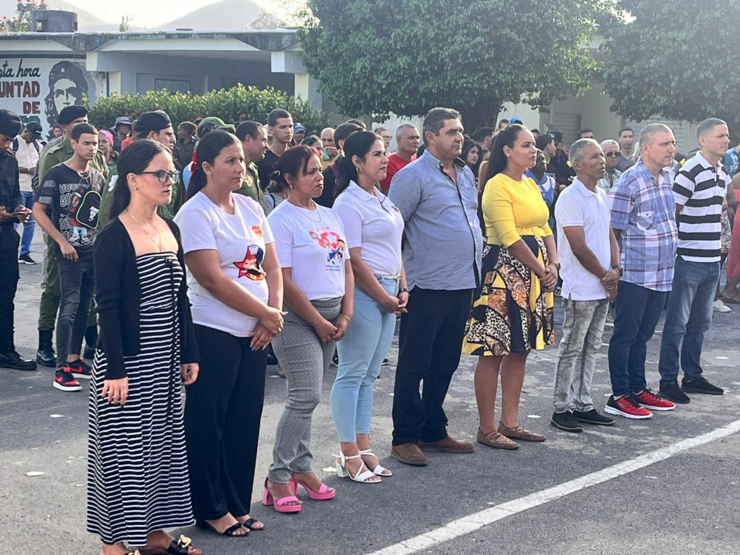 La actividad, desarrollada en la plaza Martiana de la delegación territorial del Minint, fue encabezada por Dainé González Sábado, primera secretaria de la UJC en el territorio; coronel Ariel Bravo Estupiñán, jefe del Minint en la Isla; teniente coronel Oscar Pérez Rojas, jefe del Organismo Político del Minint aquí y la primer teniente Yennis Dailén Aliaga Ramírez, Primera Instructora UJC-Minint.