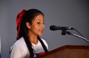 Milena Flores, funcionaria de la organización juvenil, agradeció —en nombre de los llamados “Pinos Nuevos”—, la solidaridad internacional y exhortó a mantener la motivación y la resistencia frente a la guerra económica imperialista, que debe cesar.