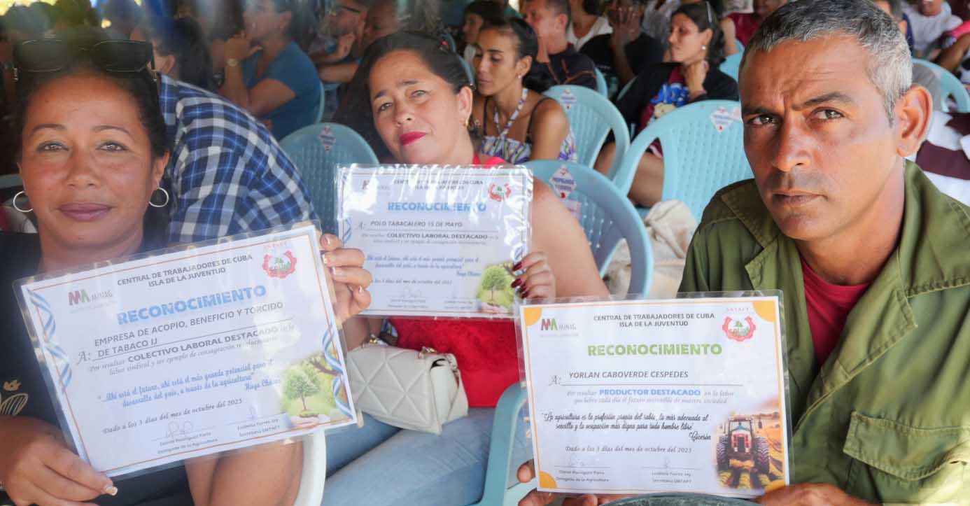 Asimismo, fueron estimulados los productores destacados en la siembra y producción de cultivos varios, más de diez secciones sindicales por sus resultados sobresalientes en las tareas sindicales y los colectivos que descollaron en la materialización de los planes productivos, en este caso el colectivo laboral polo 44, Unidad Empresarial de Base Ciro Redondo, Comercializadora El Bosque, polo tabacalero 15 de Mayo y la Empresa de Acopio, Beneficio y Torcido de Tabaco.
