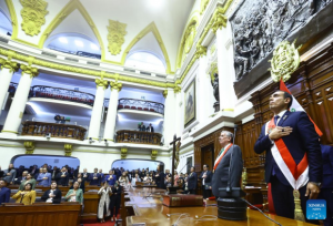 El presidente del Congreso de Perú, José Jerí, asumió el jueves la Presidencia de la nación sudamericana, luego de que el Congreso decidiera con 122 votos destituir del cargo a Dina Boluarte. Foto: Xinhua/Congreso de la República de Perú