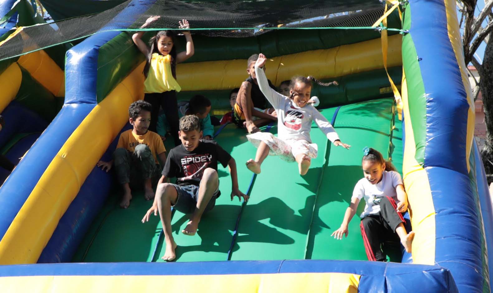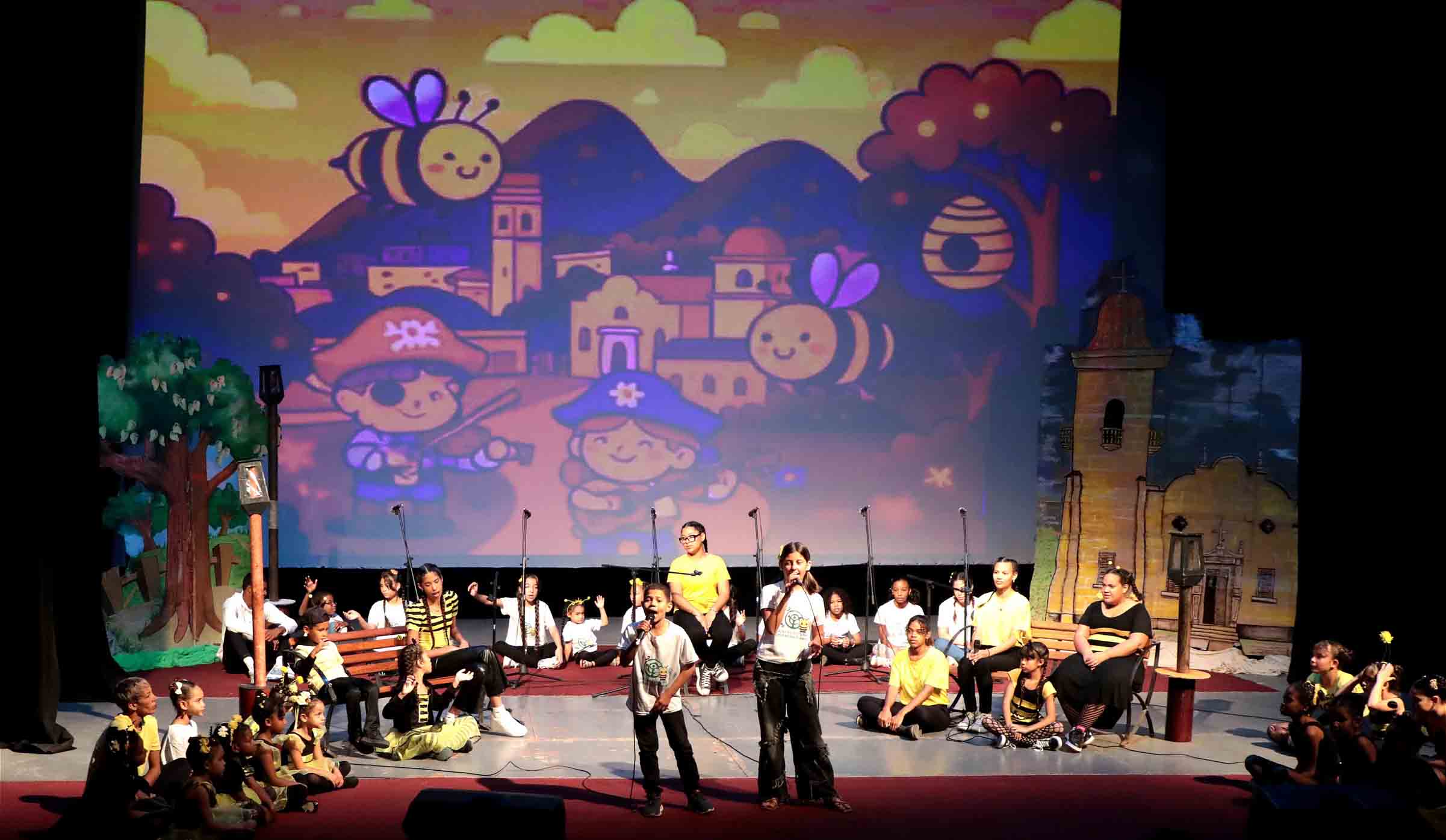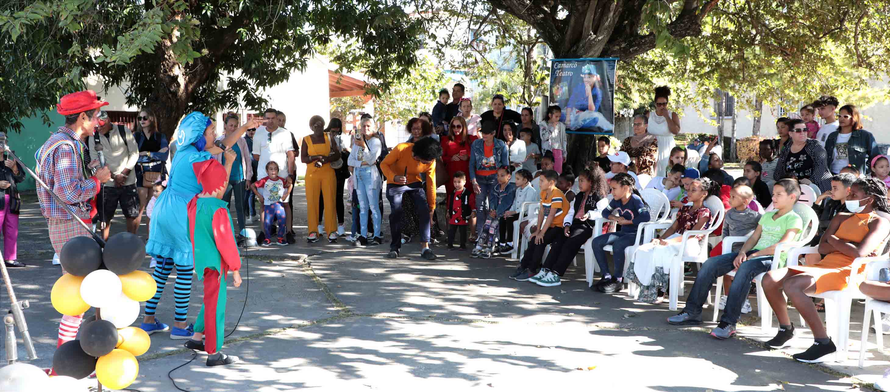 El castillo inflable y otras opciones para los pequeños se ubicaron frente a la escuela elemental de arte Leonardo Luberta y aunque no con la asistencia de público que se esperaba por el cambio de horario, la Colmenita Pinera en el cine teatro Caribe regaló a los presentes Cuentos con Matilda, maravilloso espectáculo donde priman los valores, el conocimiento de la cultura de esta tierra y el talento de las niñas y niños aficionados.