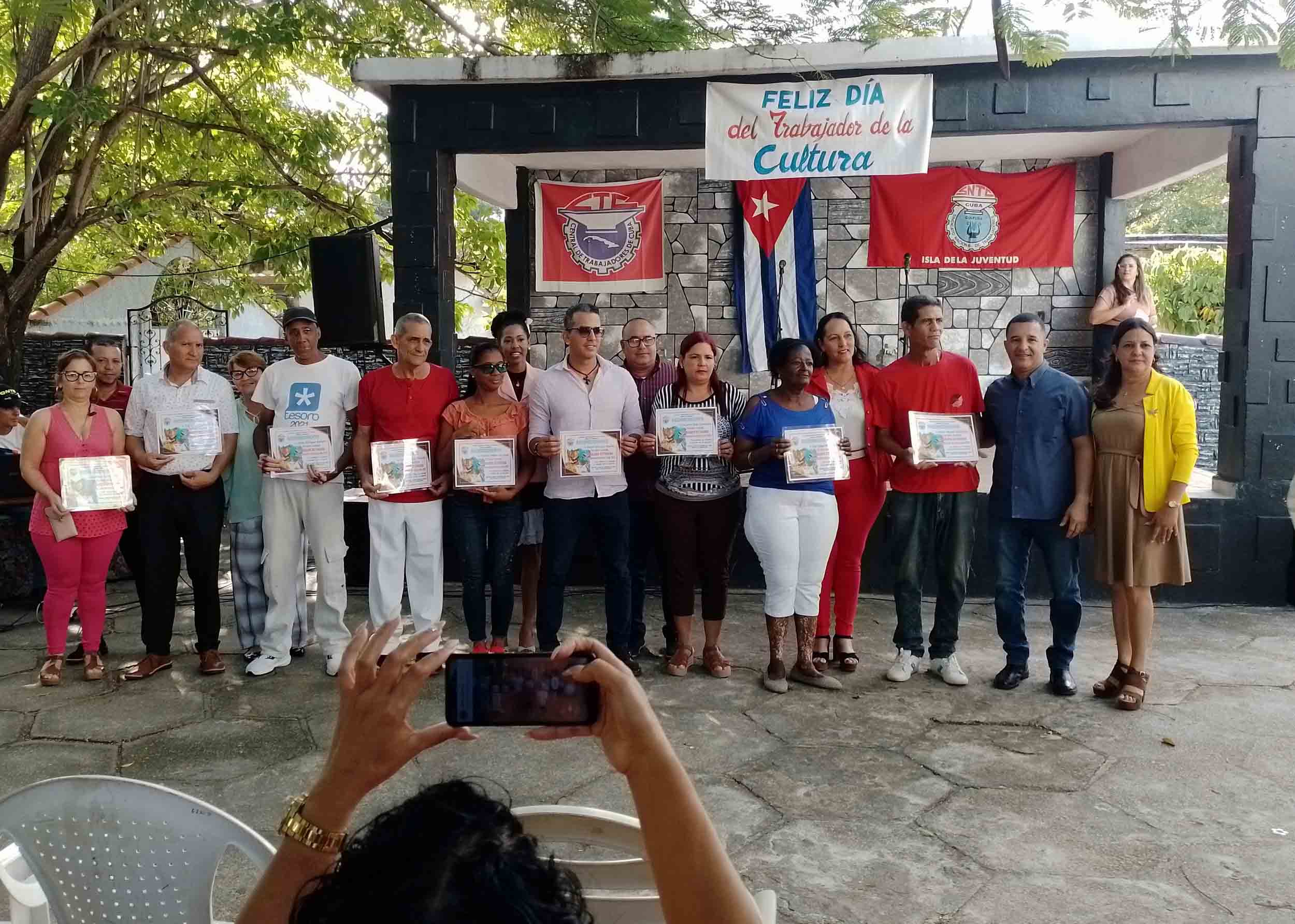 Jornada de celebración fue la de la mañana del 15 de diciembre cuando quienes sostienen la identidad y espiritualidad del pueblo pinero, los trabajadores de la Cultura, festejaron su día en el patio El Caribeño del cine teatro Caribe.
