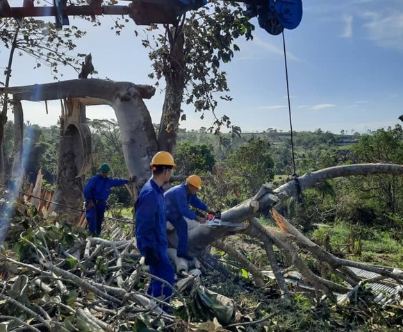 Una prioridad de los compañeros del sistema eléctrico es el municipio Santiago de Cuba, con 187 000 clientes, donde los daños en las líneas de distribución son grandes debido a la caída de árboles, con efectos graves en los postes, tendidos y otras infraestructuras.