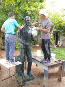 Cuatro obras escultóricas de gran formato reciben una restauración importante en la ciudad de Puerto Padre.