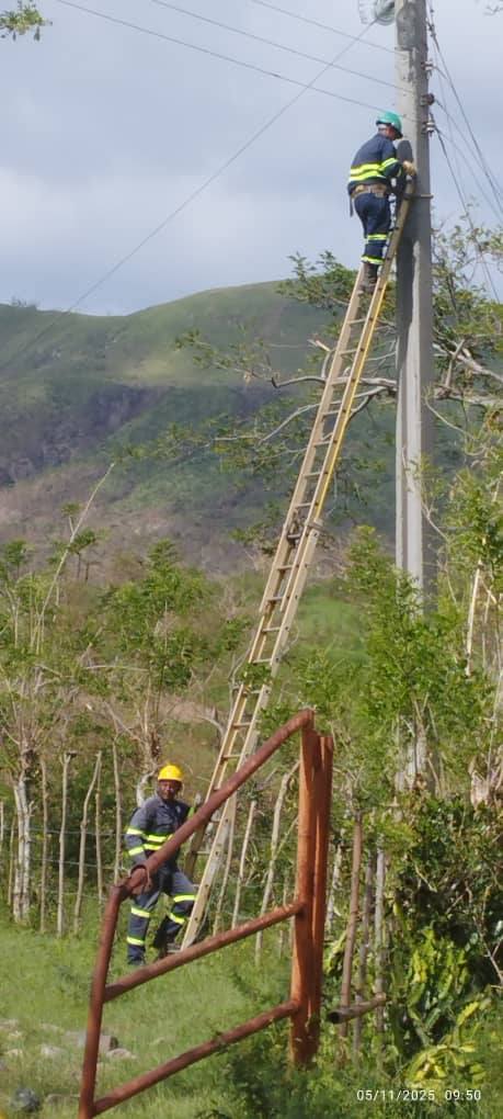 Me escribe por WhatsApp Marcos Borroto Santiesteban, uno de los jefes de las tres brigadas que conforman esta tropa perteneciente a la Empresa Eléctrica que desde el tres de noviembre partió hacia el oriente del país para contribuir a resarcir los fuertes daños ocasionados por el demoledor huracán Melissa.