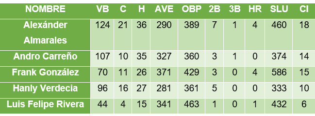 No obstante, se puede rescatar el quehacer madero en mano de los integrantes de elenco filibustero que mejor lo han hecho hasta el juego 37, cuyos guarismos les mostramos a continuación en la tabla que acompaña el texto.