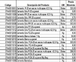 “La modificación de los precios minoristas responde a los cambios realizados en los precios mayoristas por los comercializadores que tributan el producto al sistema de comercio, teniendo en cuenta el incremento de los costos de las materias primas y el deterioro tecnológico de las plantas productoras de cemento”, explicó Portal de Villiers.