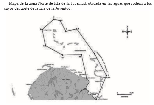 La primera, denominada Norte de la Isla de la Juventud, incluye las aguas que rodean los cayos del norte del territorio, desde punta El Esponjero, en la costa noreste, hasta la restinga (lengua de arena sumergida) de La Pipa, en el golfo de Batabanó (Mapa 1). El área Cayo Largo la integra la zona ubicada en el extremo oriental del archipiélago de los Canarreos (Mapa 2).