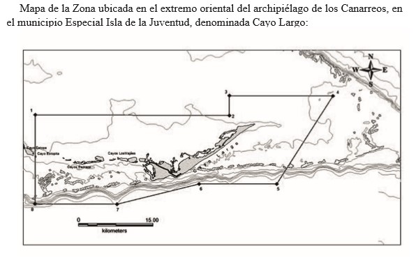 Las dos zonas en el Municipio, una incluye los cayos al norte del Municipio y la otra en los alrededores de Cayo Largo del Sur.