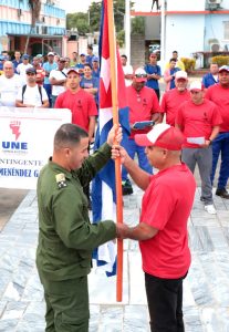 En el Municipio Especial abanderan contingentes de la Empresa Eléctrica y Etecsa para apoyar la recuperación tras el paso del huracán Melissa