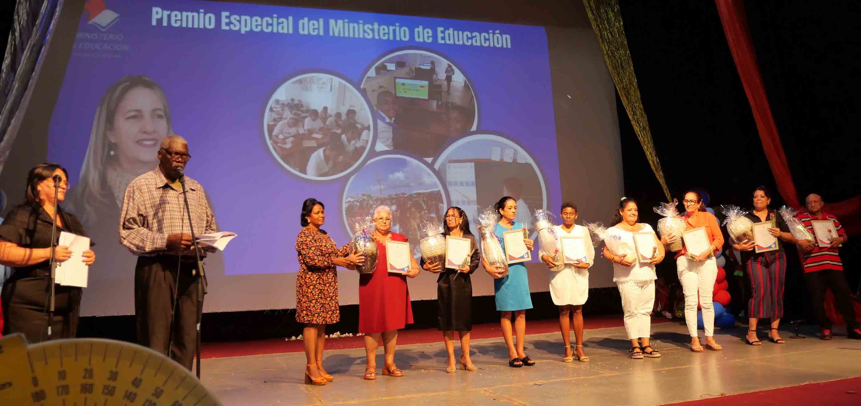 En el acto de este lunes, realizado en cine teatro Caribe, de la capital local, también se le confirió el referido Premio Especial del Mined, a Yohana Carreño Pérez, del círculo infantil Los Mambisitos; Yaidalis Mariño Chacón, de la escuela especial José Antonio Echeverría; Consuelo Gómez Gutiérrez, del plantel primario Magalys Montané; Enia Peña Ortiz, de la secundaria básica Manuel Ascunce; Olga Lidia Peña López, de la Protesta de Baraguá; Ismaray Azahares Peña, del preuniversitario Celia Sánchez Manduley; y Alipio Columbié Tabera, del politécnico Bruno Hernández.