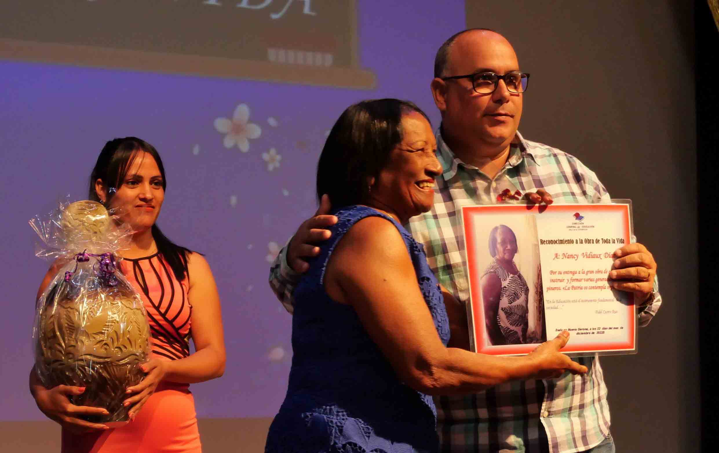 Entre aplausos y vítores la maestra Nancy Videaux Díaz, fundadora y directiva de la escuela Hermanos Saíz Montes de Oca, fue merecedora del reconocimiento Por la obra de toda la vida, entregado por el intendente Adiel Morera Macías, mientras la Distinción por la Educación Cubana la recibieron Mariolis Suárez Rivero, del círculo Los Mambisitos; Liannet Rodríguez Aguilera, directora del centro Abel Santamaría; Roberto Carlos Rodríguez Soto, jefe del nivel educativo primario de la dirección de Educación; Sislenis Matos Griñan, del Centro de Diagnóstico y Orientación; y Mariolis Rojas Sánchez, de la escuela especial José Martí.