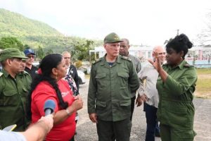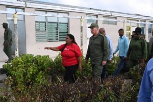 En su sexta visita a territorio santiaguero en poco más de un mes tras el paso de Melissa, el Jefe de Estado estuvo acompañado por el miembro del Buró Político y secretario de Organización del Comité Central del Partido, Roberto Morales Ojeda; el viceprimer ministro Jorge Luis Tapia Fonseca, quien apoya a la provincia desde las vísperas de la entrada del huracán; varios ministros y viceministros, y las principales autoridades de la provincia, liderados por la compañera Beatriz Johnson Urrutia.