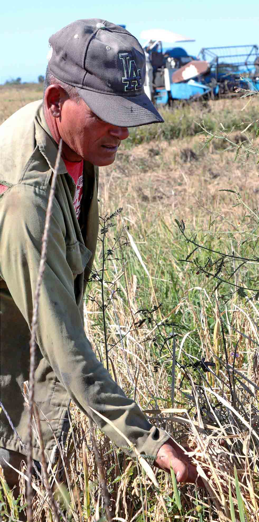 Según nos cuenta Vladimir Ballesteros Atencio, integrante del grupo de ocho trabajadores y responsable cuando Borroto no está a pie de campo, hasta ese instante habían sido cosechadas aproximadamente unas 15 ha con un rendimiento que oscila entre los 40, 45 y hasta 50 quintales (q) por hectárea.