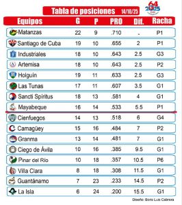 Con este éxito, Industriales igualó en la clasificación con los propios Cazadores de Artemisa, acomodándose en las plazas tercera y cuarta de la tabla. Ambos equipos se encuentran apenas a medio juego del segundo puesto, ocupado por Santiago de Cuba, que cedió 7-13 ante el monarca exponente, Las Tunas.