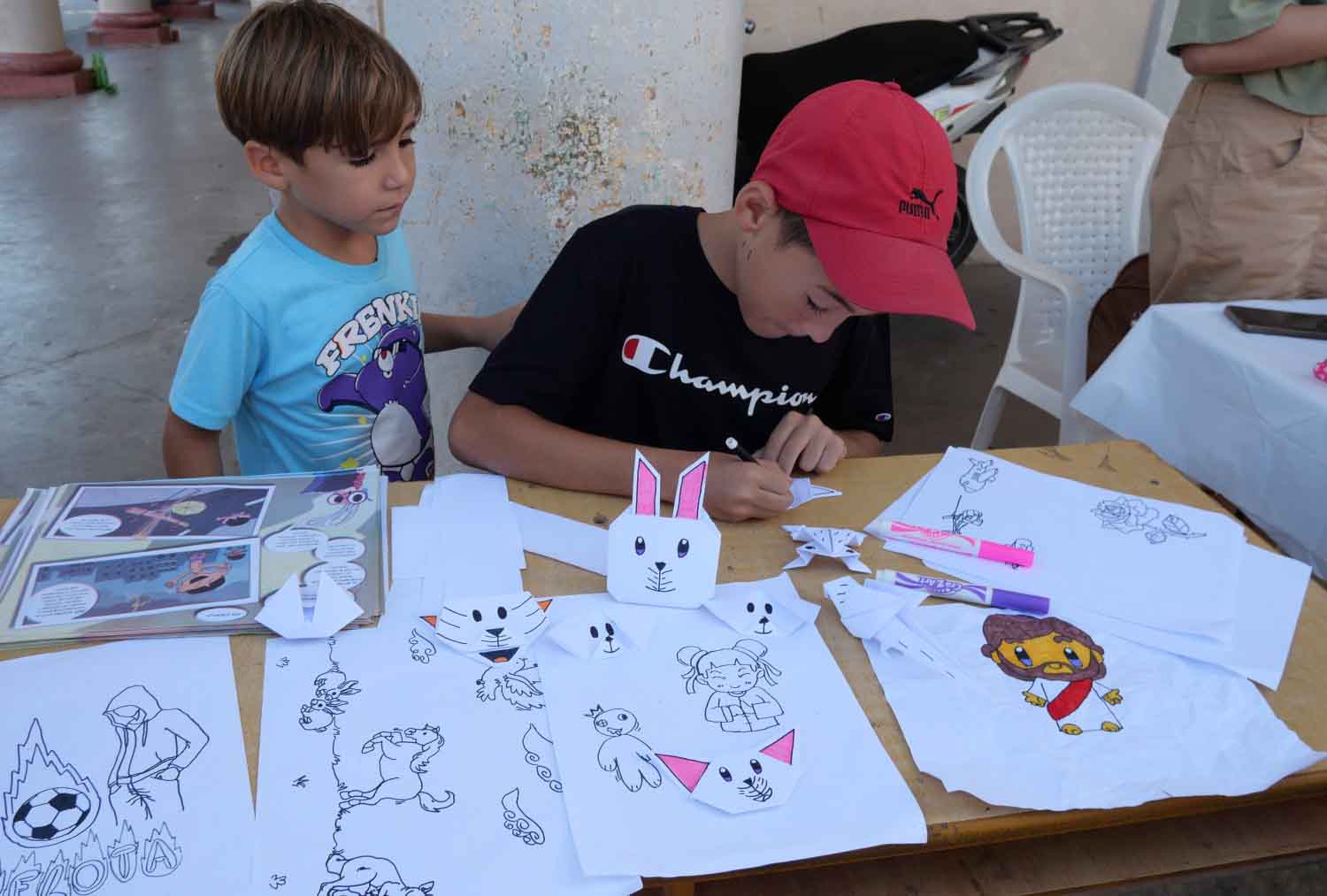 “Estoy haciendo origamis y dibujos para todas las personas que se acercan, regalárselos. A los que más les gusta es a los niños como yo. Creí que sería diferente lo que pasaría aquí hoy, pero me gusta, todos están unidos y los que pasan miran los trabajos de todos nosotros”, dijo sin dejar de crear dos gatos para los pequeños que esperaban ansiosos.
