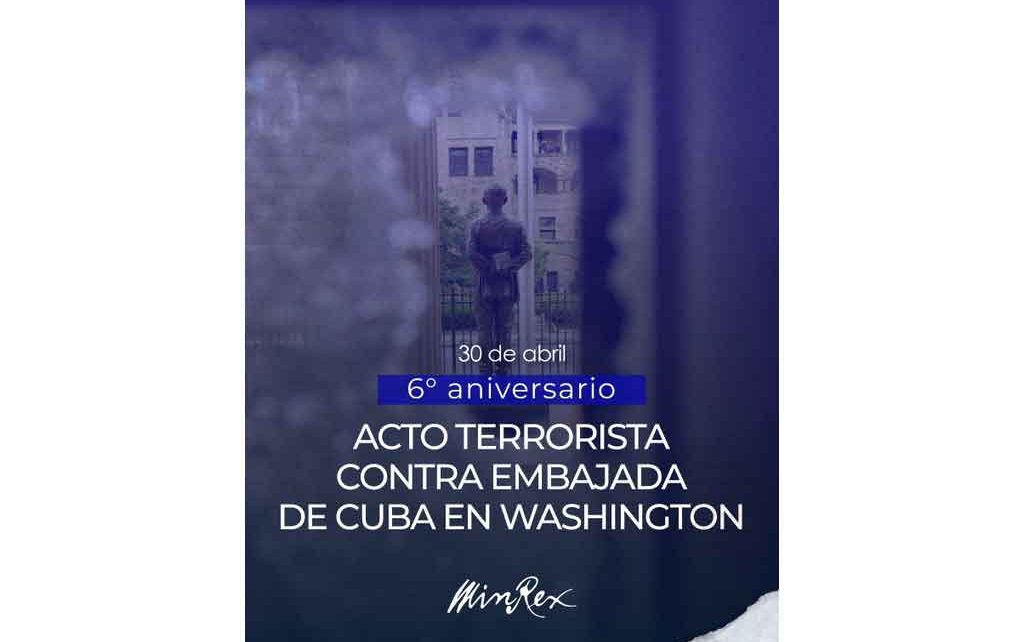 La Habana, 30 abr (Prensa Latina) El canciller cubano, Bruno Rodríguez, cuestionó hoy la seguridad diplomática en Estados Unidos, al recordar el ataque contra la embajada de su país en Washington hace seis años, caso aún impune. En la red social X, Rodríguez, recordó que el 30 de abril de 2020 un terrorista disparó 32 […]