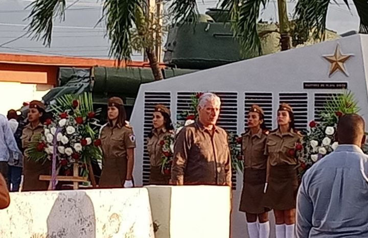 Playa Larga, Matanzas, 19 abr (ACN) Miguel Díaz-Canel Bermúdez, primer secretario del Comité Central del Partido Comunista de Cuba (PCC) y presidente de la República saluda hoy junto al pueblo, en Playa Girón, la histórica victoria asestada al imperialismo hace 65 años. Ante el monumento existente en el Museo Memorial Playa Girón, con los nombres […]