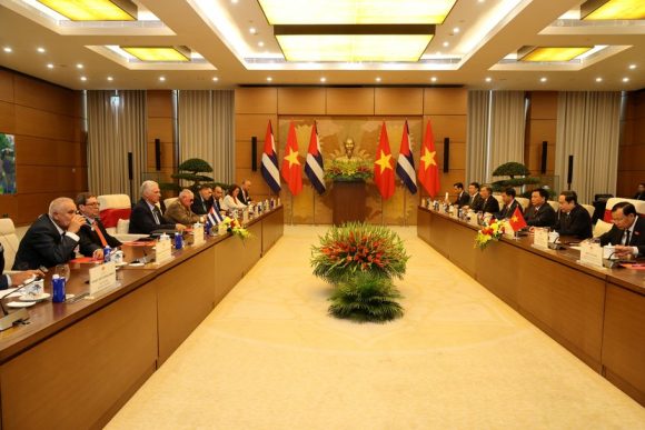 Presidente cubano sostiene intercambios con los jefes del gobierno y del legislativo vietnamitas