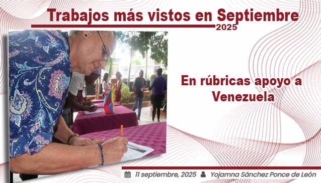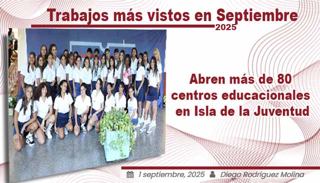 Trabajos más vistos en Septiembre 2025 Posted on 21 noviembre, 2025 Autor Redacción Digital No comentarios(0) La Redacción Digital les presenta los trabajos más vistos durante el mes de Septiembre 2025. Otros artículos del autor: Isla de la Juventud se suma al rechazo mundial contra el bloqueo Refuerzan preparación de órganos locales en Isla de la Juventud El tiempo IJ Autoridades enfrentan retos en comunidades vulnerables pineras Catamarán V2V Empress operará hacia Isla de la Juventud Mejores Trabajos