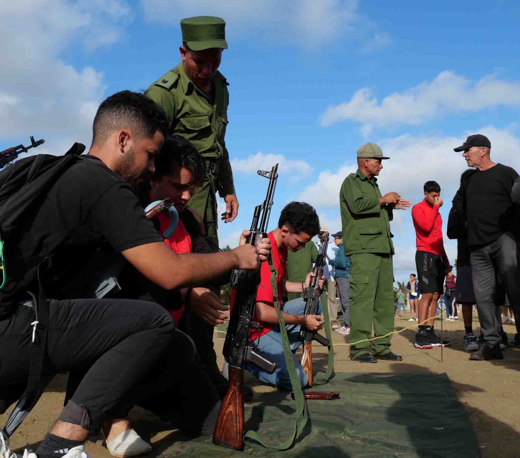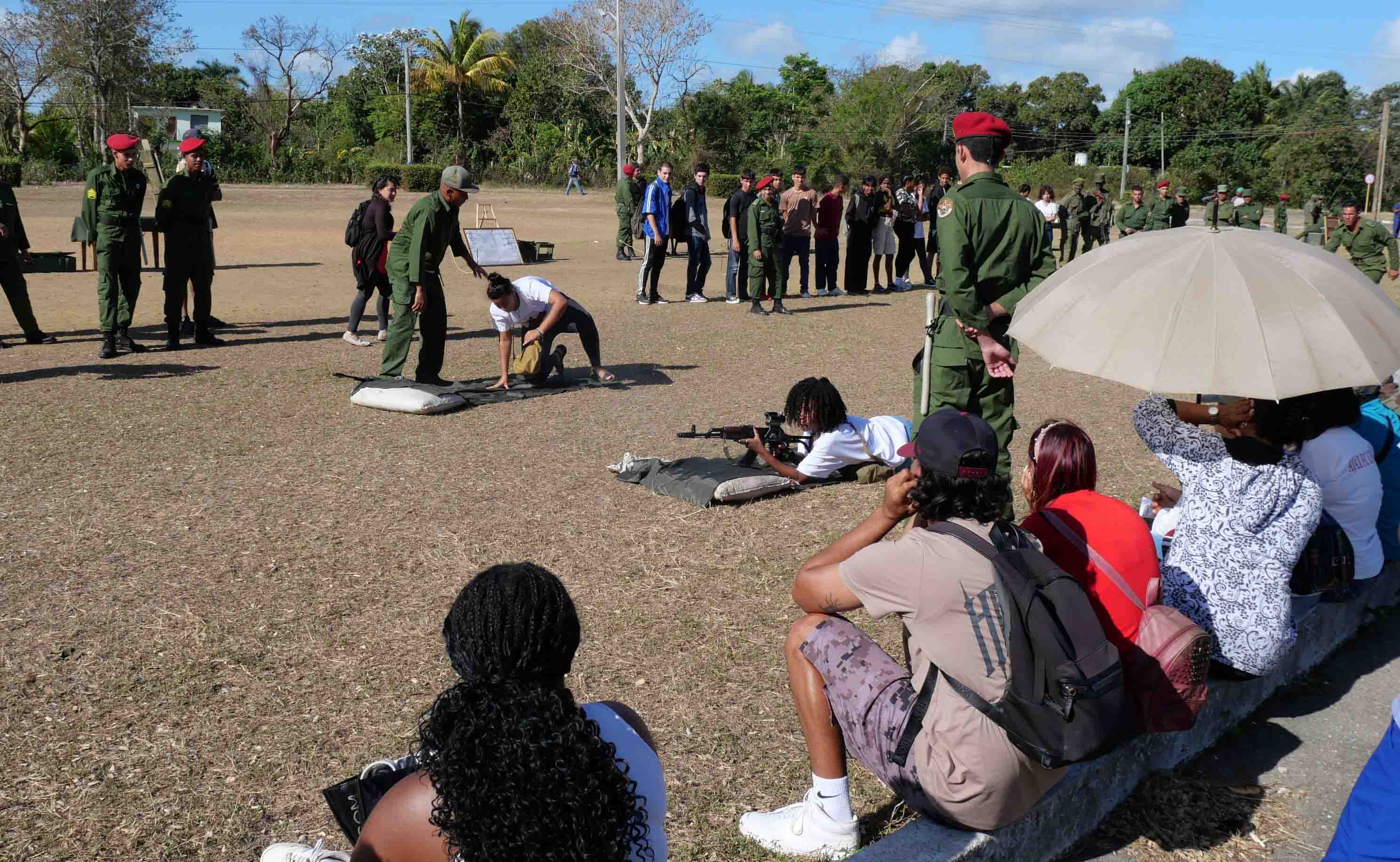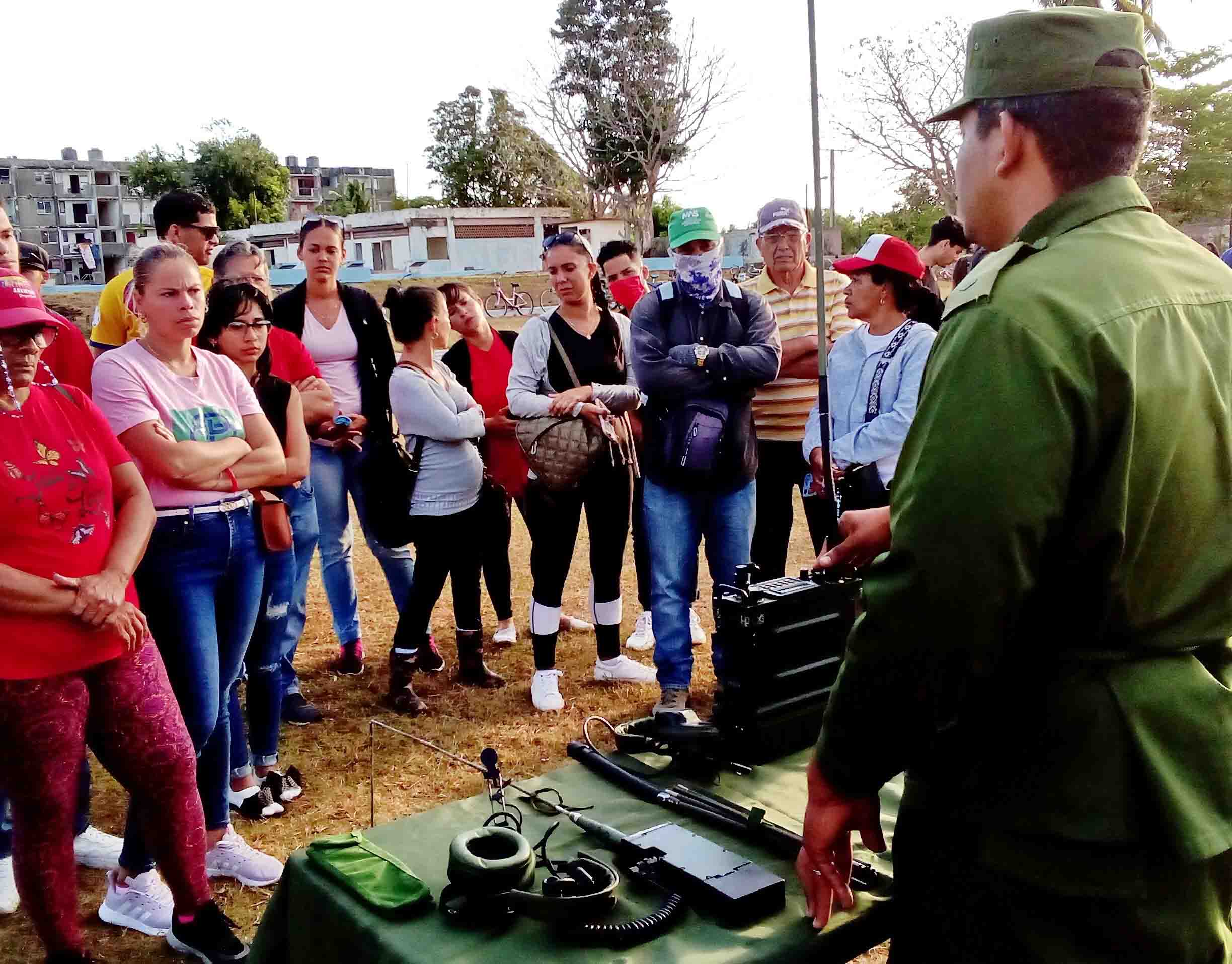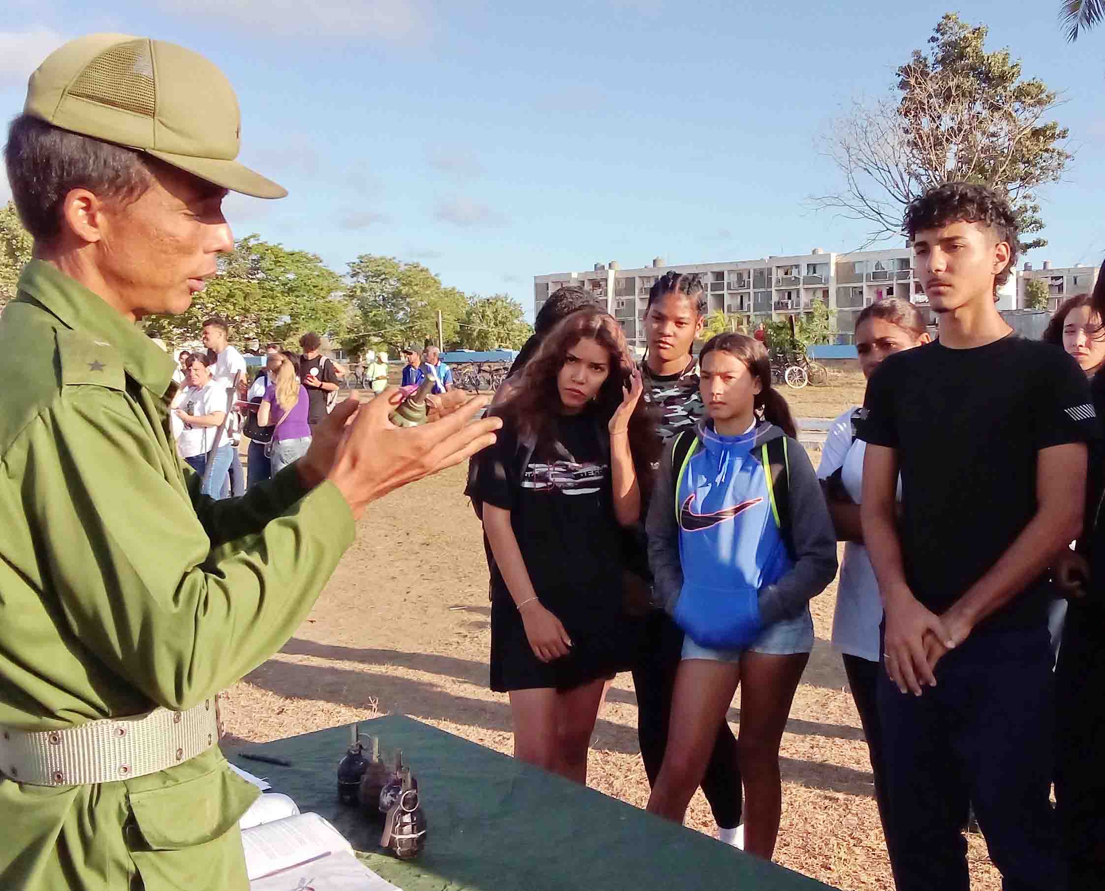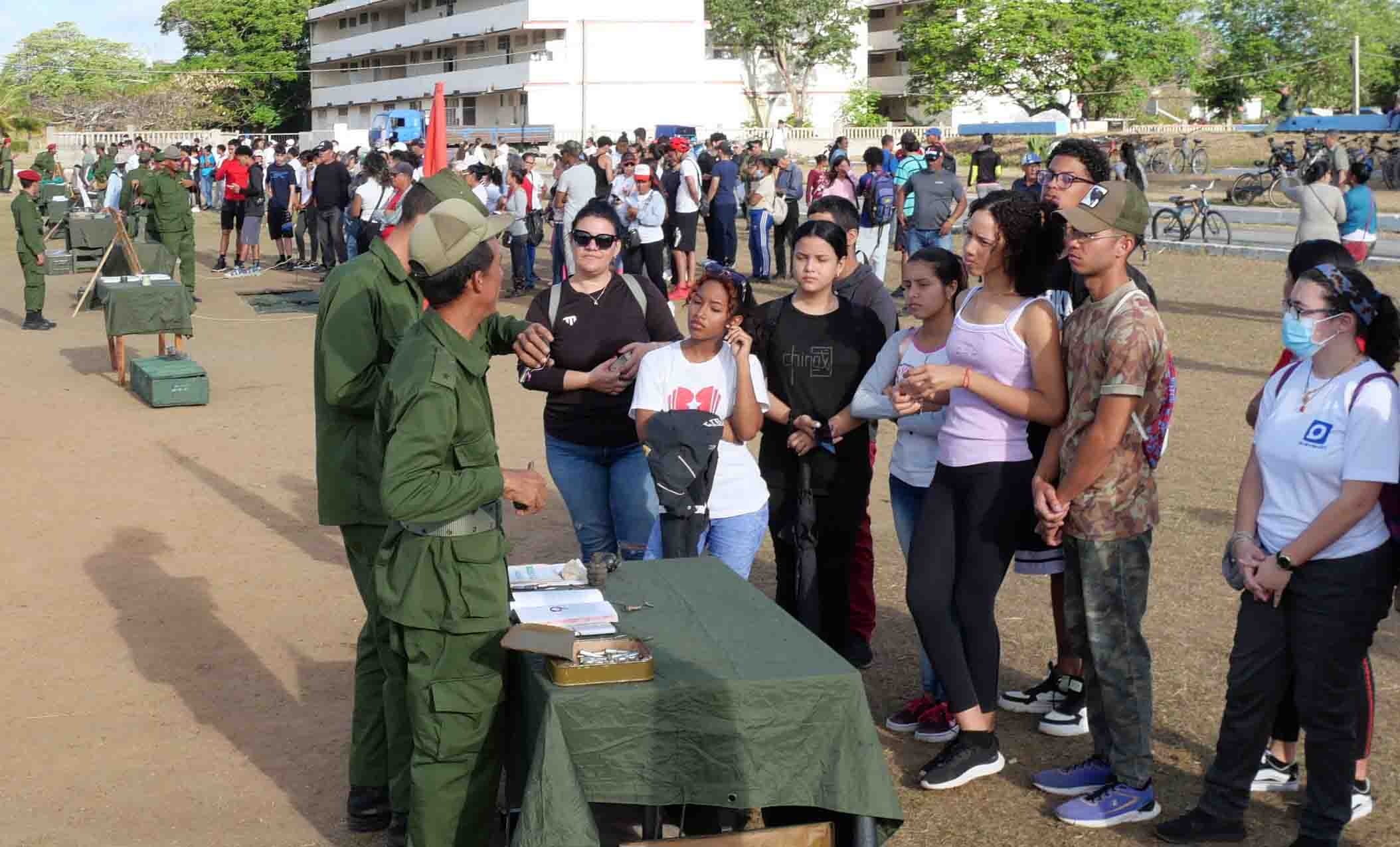 Organizados en grupos, los estudiantes realizaron momentos antes en ese lugar competencias, ejercitaron el tiro y habilidades en el manejo del fusil y armas rústicas, así como el lanzamiento de granadas, además, rotaron por diferentes áreas de adiestramiento militar y clases combinadas relacionadas con la protección frente a armas químicas, el uso de drones de exploración y escopetas de cartucho contra esos artefactos, entre otros temas necesarios para acudir al llamado del deber por mantener la soberanía de Cuba.